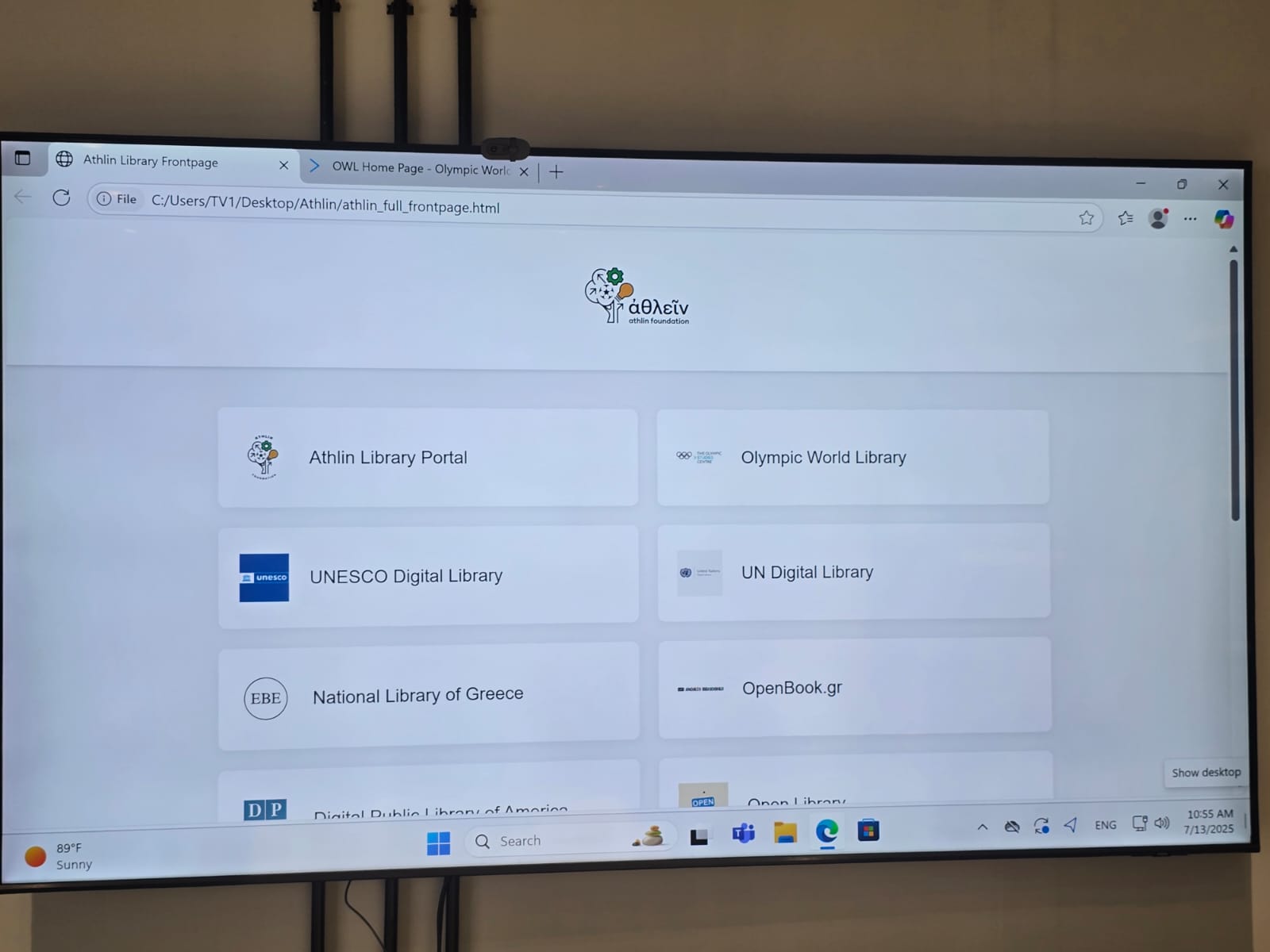 Ώρες λειτουργίας Αθλητικής Βιβλιοθήκης