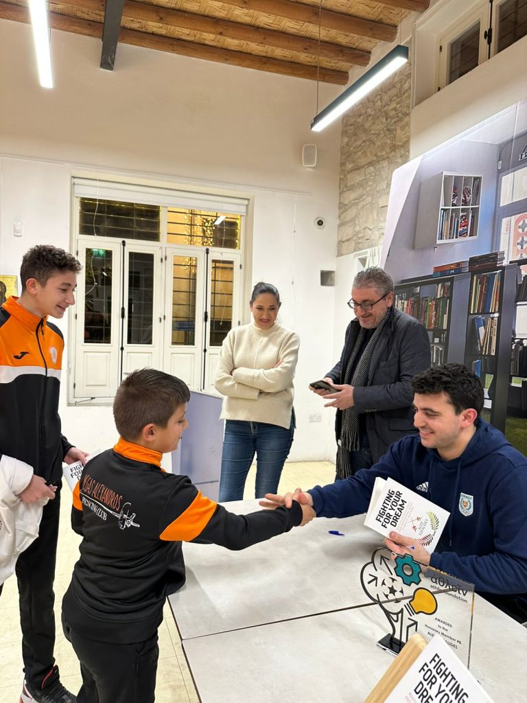 Μεταξύ αυτών που τίμησαν την εκδήλωση, ξεχώρισε και η παρουσία αθλητών ξιφασκίας του Συλλόγου Ξιφασκίας «Μέγας Αλέξανδρος» Αραδίππου, οι οποίοι είχαν την ευκαιρία να συζητήσουν με τον αθλητή, να εμπνευστούν από το παράδειγμά του και να λάβουν προσωπικά υπογεγραμμένα αντίτυπα.